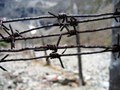 - Землянки для зэков тянутся вдоль ущелья, ограждены со всех сторон колючей проволокой. Административные корпуса и бараки для вольнонаёмных стоят ниже по ущелью