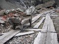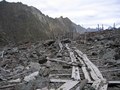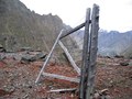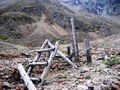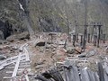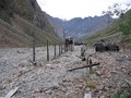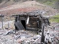 - Бараки заключённых почти не сохранились. Они расположены ближе к штольне, выше по ущелью, у них нет свай.