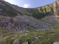 - Слева седловина перевала Артемьева. Справа озеро Артемьева (Хрустальное)