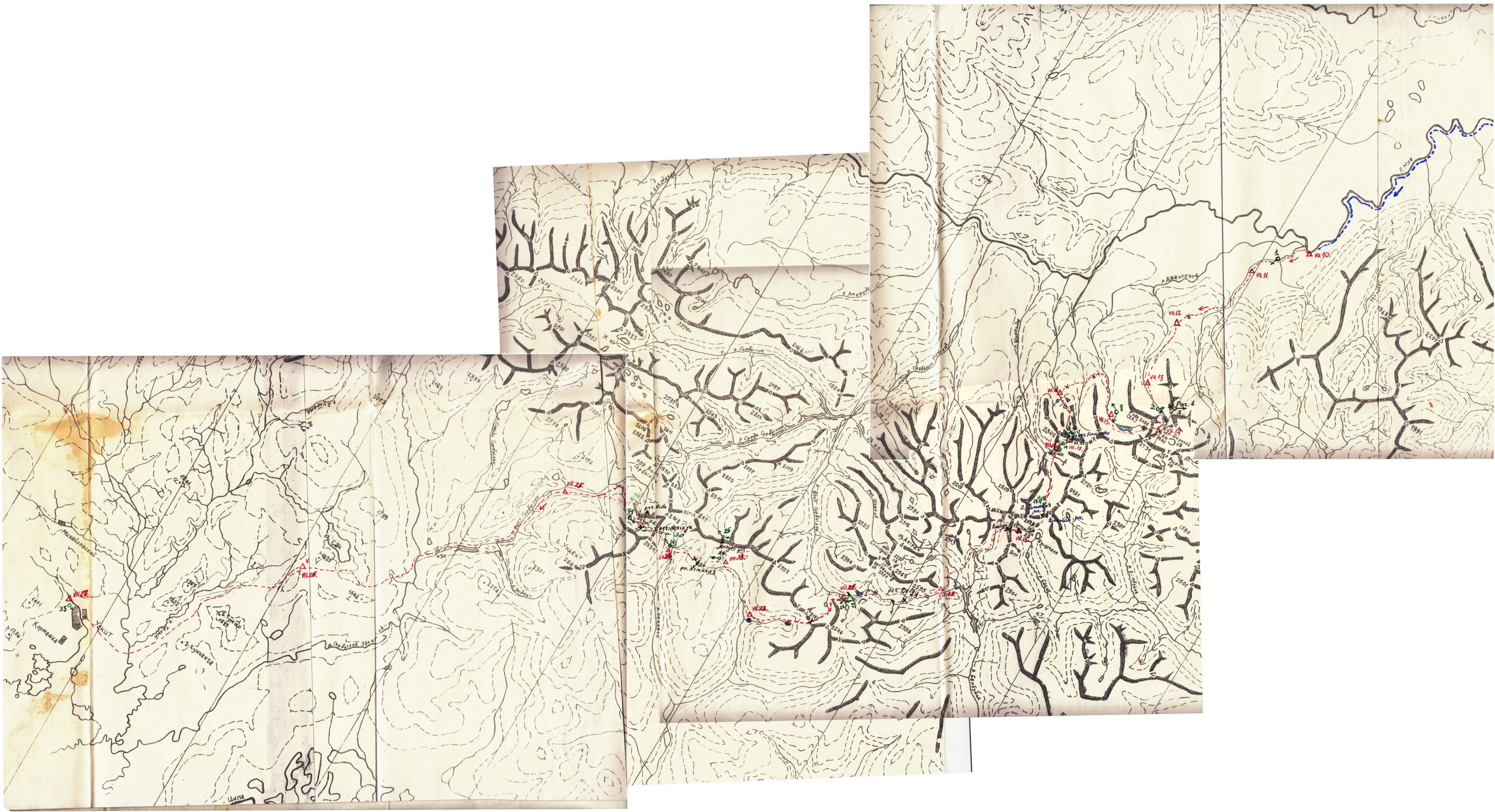 | Южно-Муйский хребет. Орографическая схема и маршрут группы Д. Гервидаса,1984 |