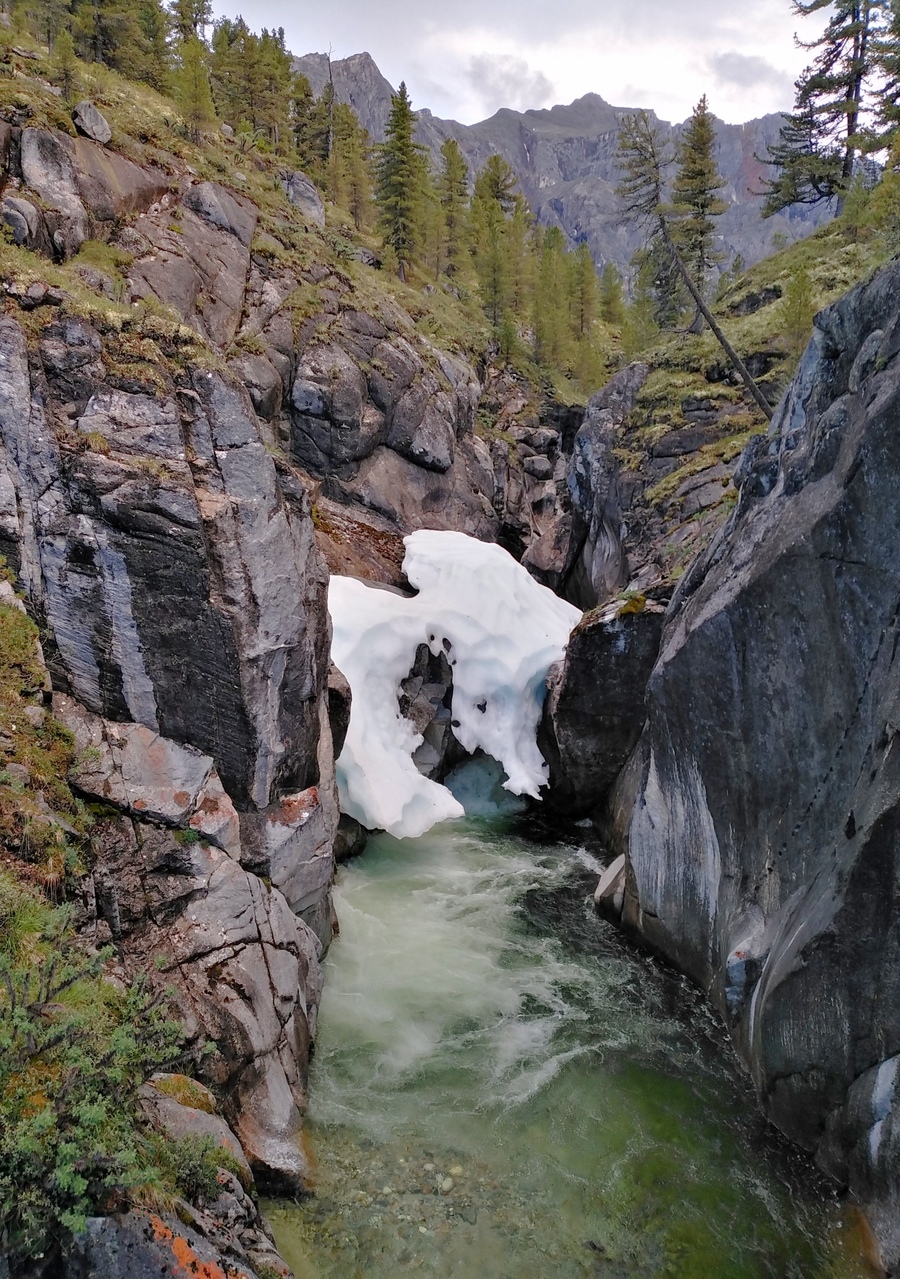 | комментарий автора: | В разгаре лето, а в большом водопадном каньоне Ара-Ошея прячется зима. |