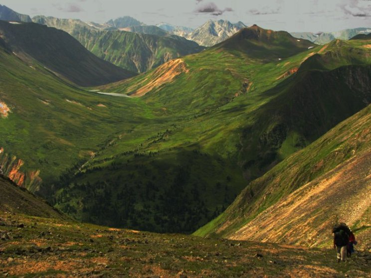 | Wladimir | Подъём на Хойто-Дабан со стороны Дунда-Гола. На заднем плане — Чойганский перевал с озёрами |