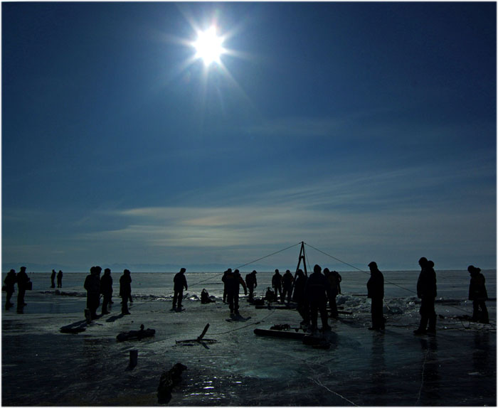 | Александр Мамонтов | Надежда Степанцова: А до того, как провалилась первая машина, листвянчане слышали как лопнула эта трещина. Страшно, говорят. Так вот, когда вытаскивали пепелац, тоже ухнуло. Тут то и произошло деление на людей и ротозеев. Я тоже испугался — думал что снесут меня ротозеи нафиг с 30кг рюкзаком и затопчут, т.к. был в этот момент между трещиной и берегом :) |