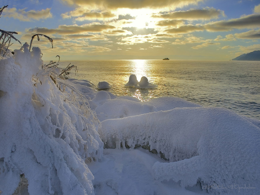 | Ирина Дмитроченкова | Ну, наверное, эти ожидания исполнены. А мне нравится этот желтый, иногда бывает такое какое-то пронзительное и необычное освещение. И как он гармонирует с заснеженными ветвями, просвечивая и отражаясь от них... А еще — странное ощущение: кораблик как будто чуть движется, слегка. И тут же замирает... |